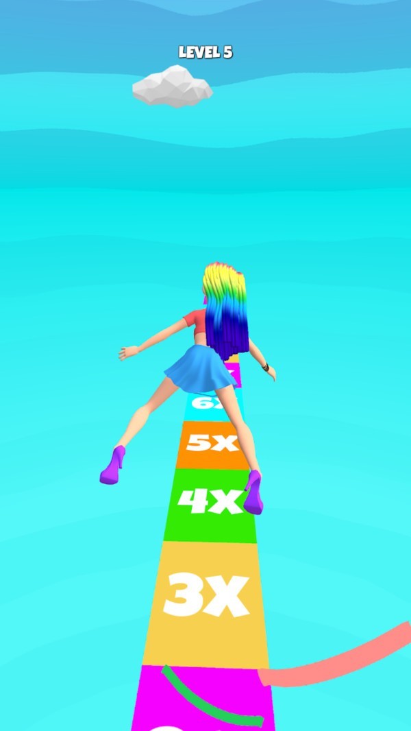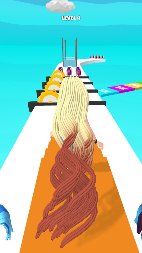 2.玩家需要跑酷来收集他们前面的道具和头发来得分,他们的头发越多,辫子就越长。