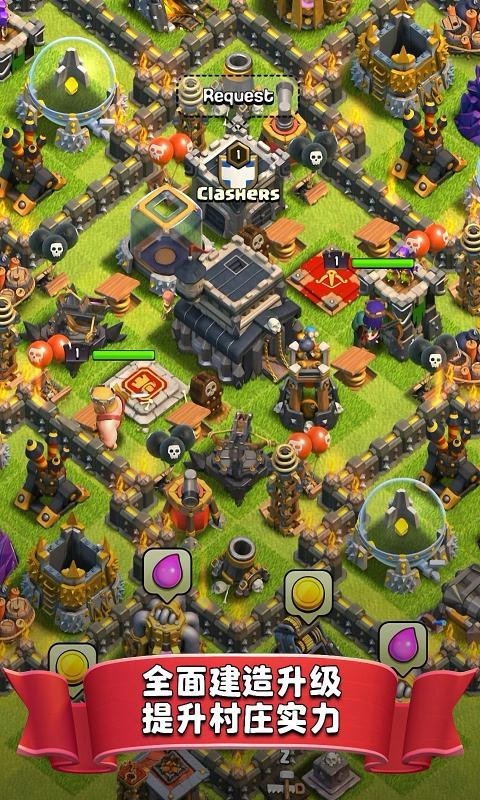 部落冲突14本游戏是一款能够为玩家提供无限资源无限金币的版本,让玩家直接冲击到14级,解锁全新的大本营,14级大本营增加了全新的六大防御系统以及毒药效果,不光能造成伤害和减速还可以降低敌人的攻击力,建