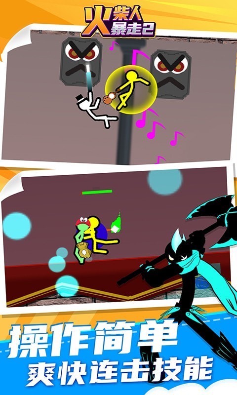 火柴人暴走2是一款玩起来非常爽快的动作冒险休闲类手游,游戏有着非常精致的卡通游戏画风。在火柴人暴走2游戏中,玩家可以控制自己的火柴人与其他火柴人进行比拼格斗,游戏的玩法十分简单,玩家可以轻易在火柴人暴