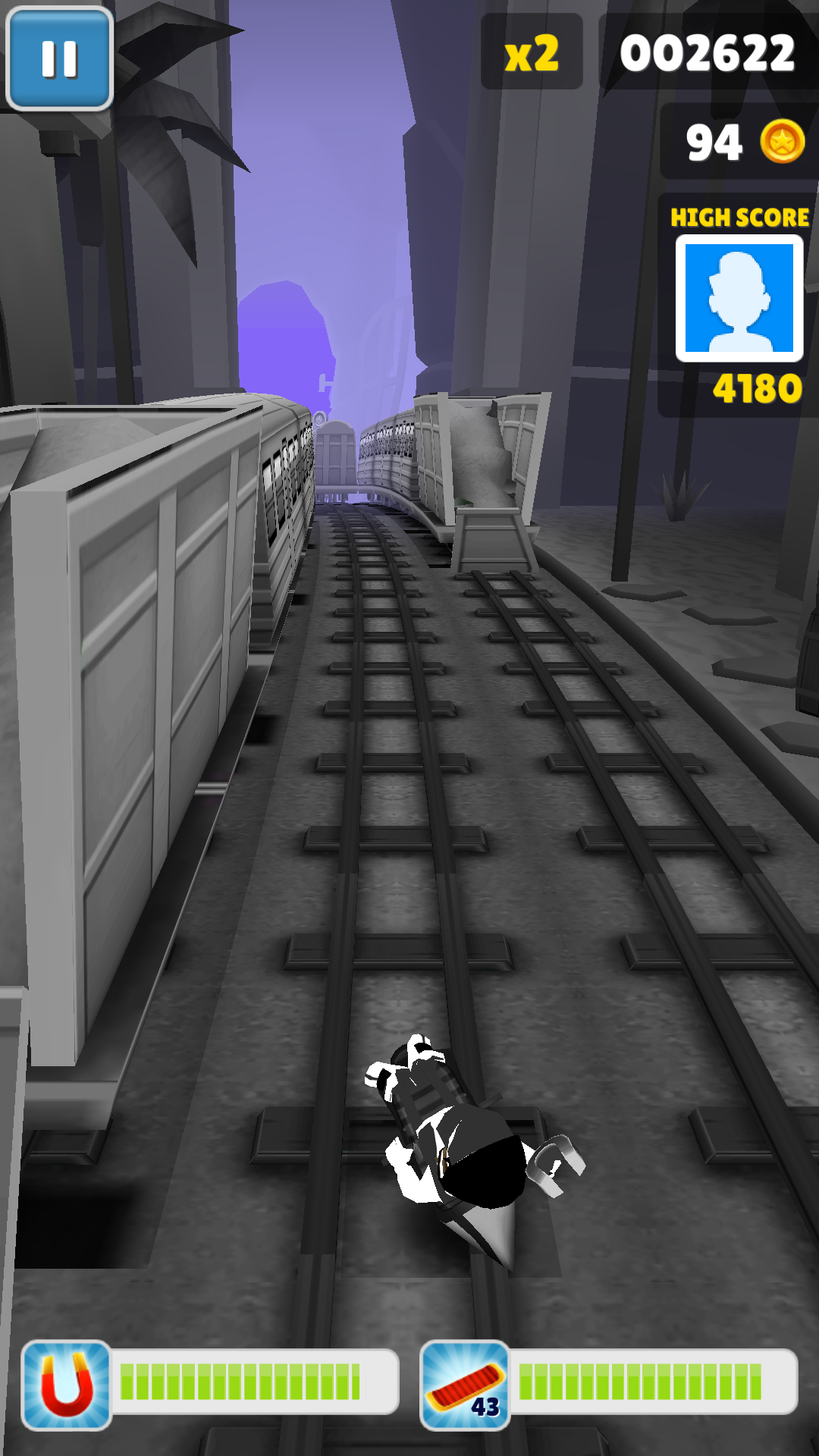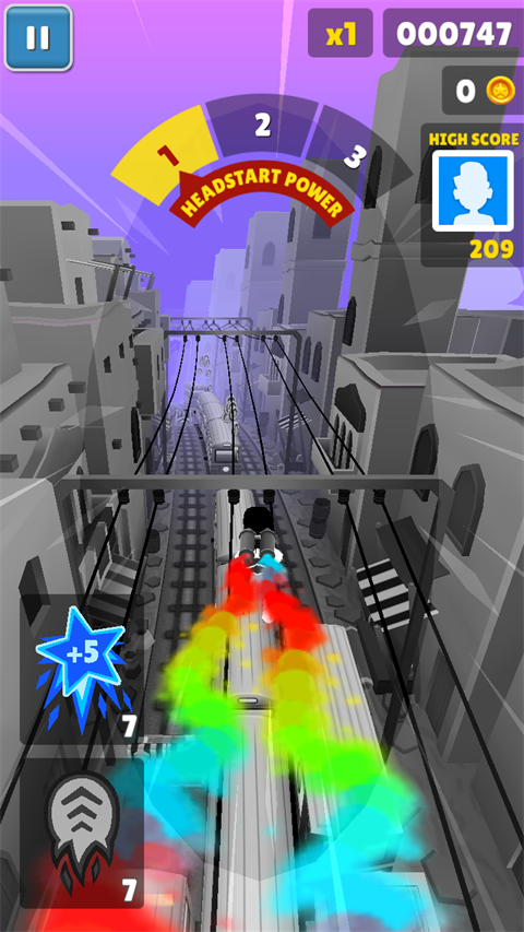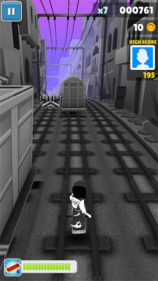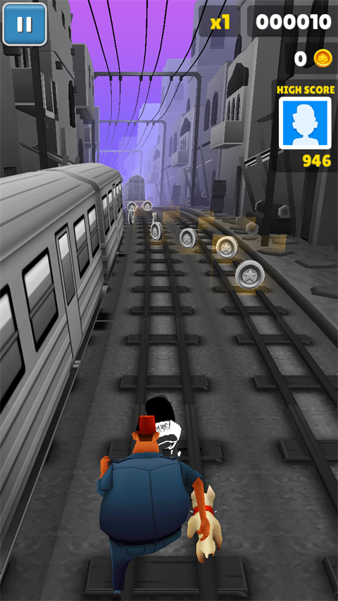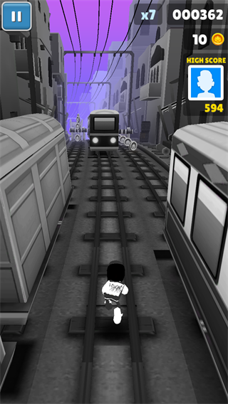 1、经典跑酷游戏,化身跑酷男孩,避免售票员和狗的追杀;