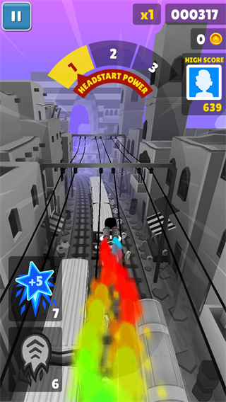 2、穿越地铁,避开任何障碍,捡起金币,收集更多奖励;