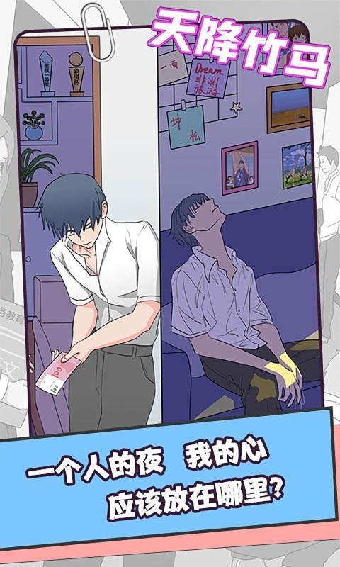 天降竹马游戏是一款非常有趣的剧情游戏,在游戏中玩家将体验甜甜的恋爱之旅,玩家将在这里遇到和自己青梅竹马的男主角,每一个男主角都有不同的特质吸引着玩家,玩家可以将他们逐一进行攻略,并且通过提升好感度还可以解锁全新的剧情。