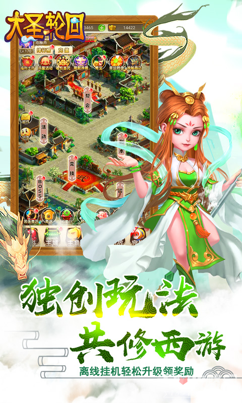 1、大圣轮回满v版,叫朋友一起踏上西游冒险之旅!游戏选择画面,美丽再现经典西游情节,开创勇敢闯入天宫、向东学习、81难等新游戏。还有一键减负、离线挂机等交心游戏,不坑不累