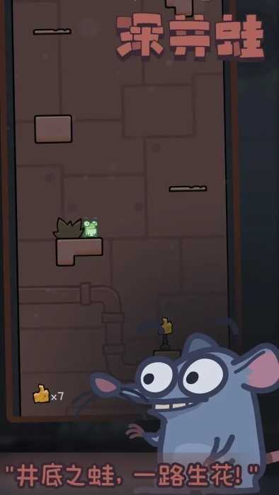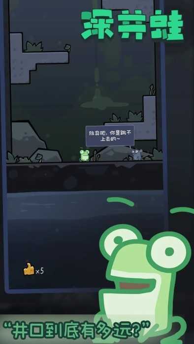 深井蛙是一款玩家帮助青蛙跳出深井的益智小游戏。游戏玩法简单,玩家通过点击屏幕控制青蛙上跳,躲过障碍物和陷阱,帮助小青蛙成功逃生。游戏画风可爱,上手简单,玩家可以利用碎片时间进行游戏,带给玩家轻松愉悦的游戏体验。