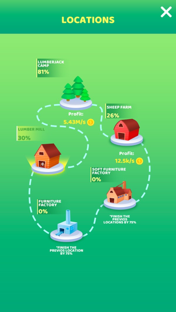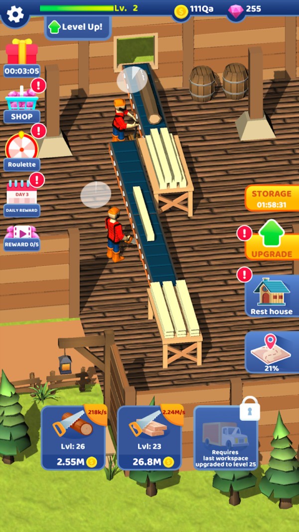 伐木厂大亨是一款有关伐木工人从零开始成为大亨的模拟经营游戏,玩家将可以在游戏里扮演伐木工人,通过自己的努力经营,最终成为一代伐木大亨的故事。伐木厂大亨游戏的玩法非常轻松悠闲,前期通过努力伐木获取报酬,利用这些资金在进行经营,随着时间的流逝,自己的事业也会越来越大。