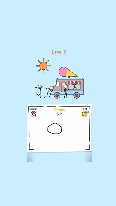 休闲益智画画游戏,游戏玩法简单,玩家需要操控画笔进行绘画,画出各种游戏角色道具进行游戏,需要根据不同关卡的任务,进行不同人物的描绘,只有描绘出的道具相似度较高,才能够通关,游戏操作简单。