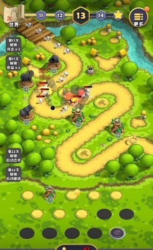 1、炮台很多,各种类型都有,你游戏的时候可以自己去一一选择然后使用;