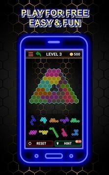 荧光六边形拼图游戏是一款非常耐玩的趣味休闲游戏,在游戏中玩家需要将手中的拼图拼成系统给出的形状,玩家在开始游戏之前需要先合理的布局确定好起始的位置是非常的重要的,一起来挑战更加困难的关卡吧。