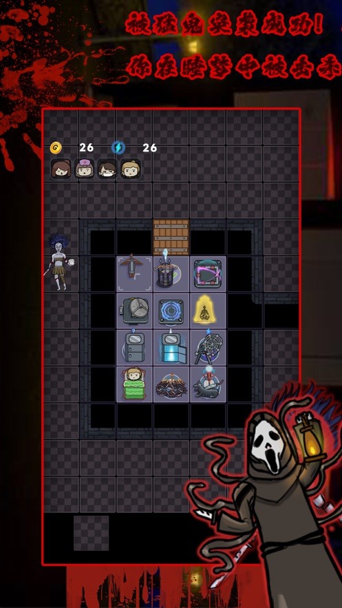 猛鬼会攻击你防御的地方,升级门板,建造炮塔来抵御猛鬼的攻击。