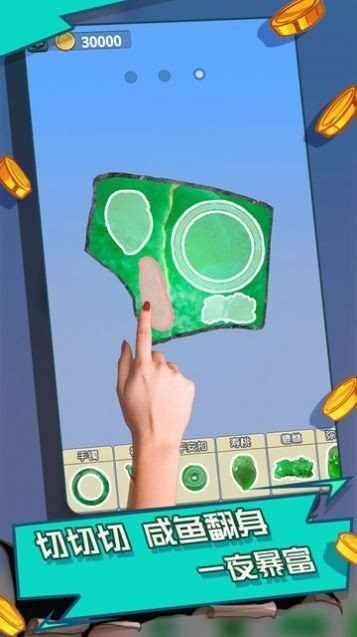 2、切碎的翡翠质量越高,就能得到越多的金币,一夜暴富或一夜暴穷都有可能在这里实现。