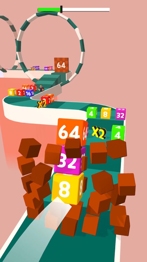 2048快跑游戏是一款以2048玩法为背景的冒险闯关游戏,在游戏中玩家需要操控带有数字的方块来进行闯关,途中需要不断搜集能够使用到的数字,知道合并成2048之后就可以顺利的过关,一定要在终点之前完成。