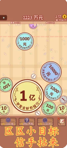天天小目标游戏是一款非常有趣的模拟经营类游戏,在游戏中玩家需要自己发现发财之道,通过合理的经营事业,从一个一无所有的穷小子,到手握众多财富的顶级富豪,通过不断的积累掌握众多的财富。