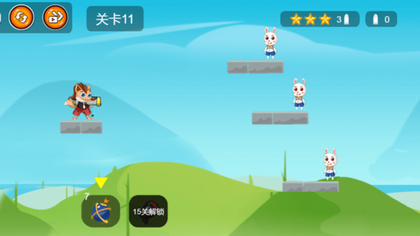 炮轰兔子是一款有趣的狼兔战争竞争游戏。在游戏中,玩家需要控制灰狼来射击兔子。他们只需要用左拇指拖动摇杆来控制炮弹的发射角度和力量,用右拇指点击瞄准框发射炮弹,就可以炸飞隐藏在每个角落的兔子,成功通关。