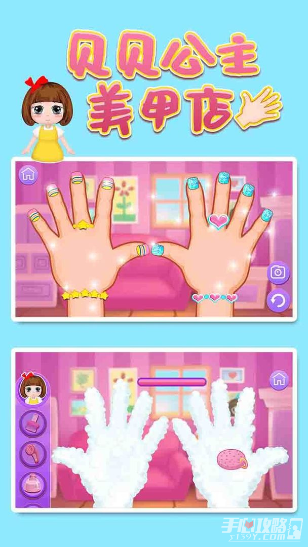 2、贝贝公主美甲店中玩家们能够在这里完成各种各样的有趣的美甲操作,非常的有趣,快来试试这款游戏吧