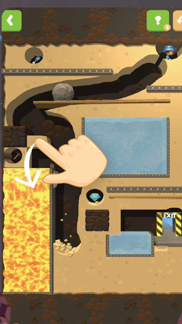 矿工被困住了!引导矿工到达出口,帮助矿工找到出路。挖掘矿道,移动障碍物,为矿工开辟道路,离开洞穴