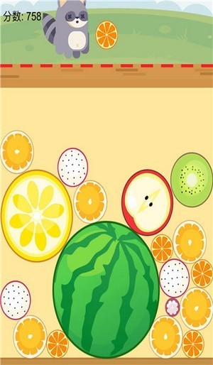 4.水果合成游戏,在游戏中,玩家需要控制水果的着陆点,最终通过小水果合成大西瓜或小芝麻。游戏风格清新可爱,简单清爽,是你消磨时间的最佳选择!