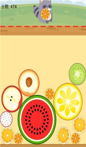 1.水果可以用手指滑动,两种相同的水果可以合成一种更大的水果。合成水果越多,分数就越多。