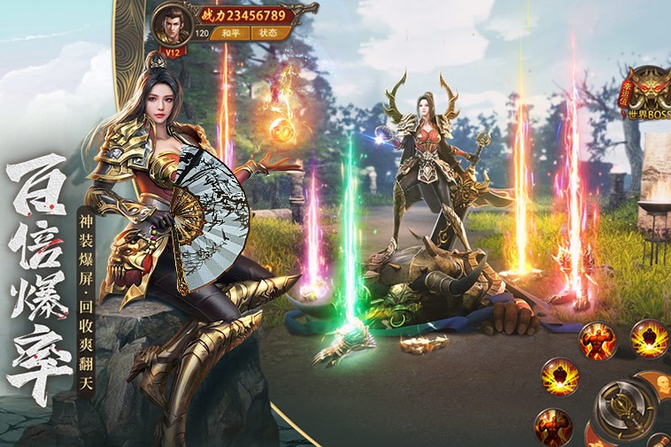 3.激爽热血BOSS战副本,大怪小怪都爆神装,完美的游戏体验。