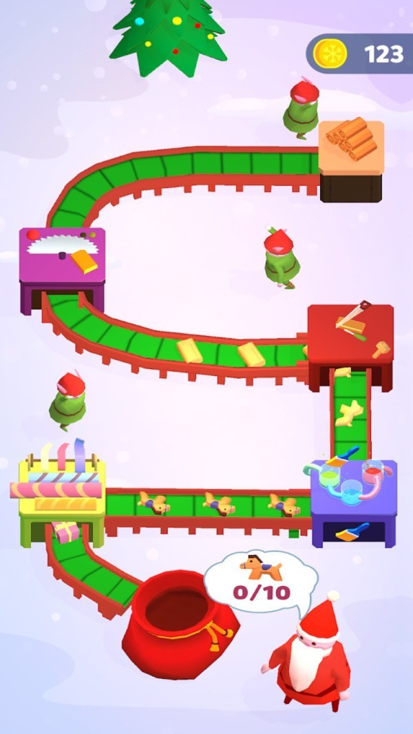 2、帮助圣诞老人为节日制作所有礼物,简单的益智游戏,带给您真正的圣诞气氛,圣诞老人工厂传送带模拟器。