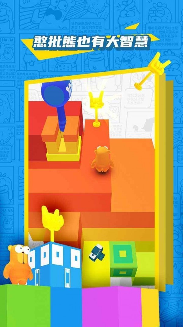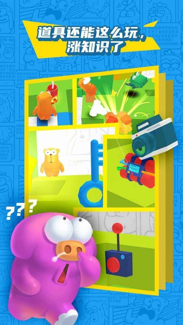 1、穿过机关重重的3D迷宫,避开各种搞笑道具,解决脑洞大开的谜题。