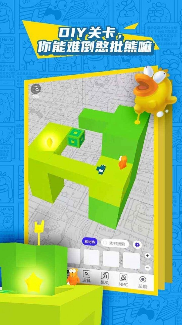通过简单的编辑器,玩家可以创建自己的游戏关卡,像拼积木一样构建3D关卡,轻松上手;