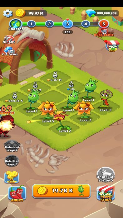 僵尸农场安卓版同样是农场中的植物与僵尸之间的战斗,不过唯一不同的是,这一次我们不仅仅只是“正义”的守护者,更能做“邪恶”的入侵者。游戏中以农场为主要战场,我们会看到绿意盎然的草地和各种可爱外表的植物,当然更少不了那些打扮奇葩的僵尸大军了,游戏采用横版2.5D画面呈现,与植物大战僵尸基本相同,左侧为作物所在区域,而右侧则是僵尸们出现的地方。