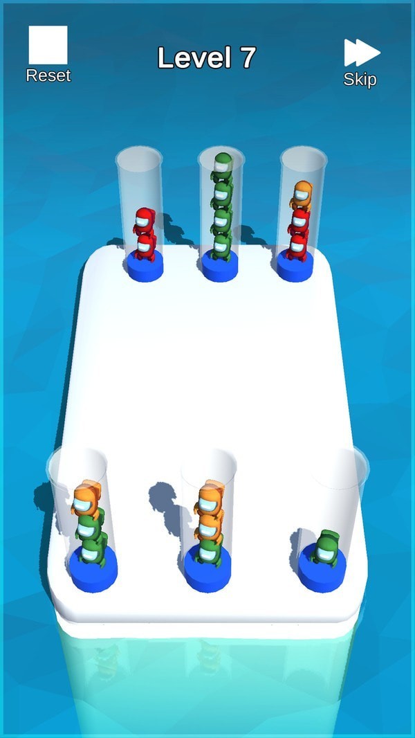 冒充者分类是一款趣味性十足的解谜闯关小游戏,冒充者分类游戏采用3D的游戏画面。冒充者分类游戏的玩法十分简单,玩家需要更具冒充者的颜色将相同颜色的冒充者放置在相同的瓶子中,全部整理完成后即可进入下一关。冒充者分类游戏为玩家提供了非常多的游戏关卡,关卡的难度不高,玩家可以轻松上手。关卡的难度会随着玩家的游玩进度逐渐上升。