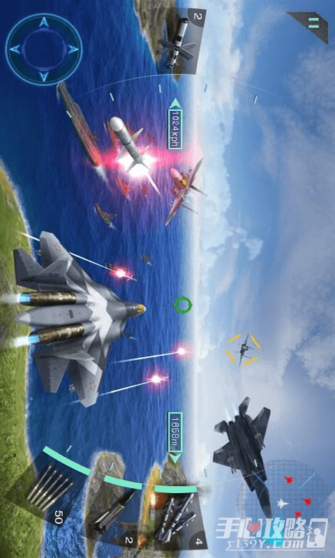 2、这里有许多战斗机可以解锁。每架战斗机都有完全不同的射击技术。你需要控制不同的战斗机参加各种激烈的战斗,并试图在战斗中杀死更多的敌人