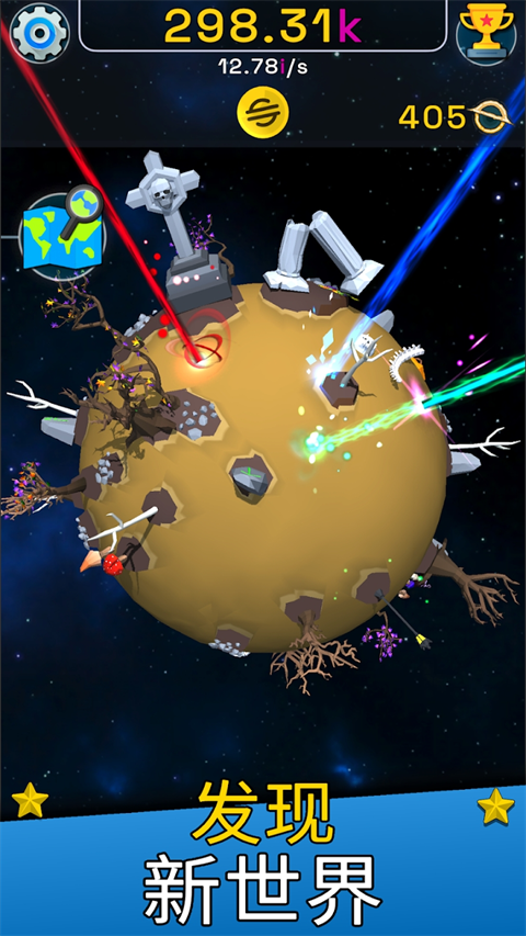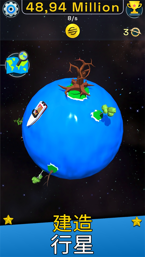 2、第一栏是升级栏。在这里,玩家可以使用金币进化星球。每次升级都可以让你的星球成长。每个进化都需要不同的金币。进化水平越高,金币就越多