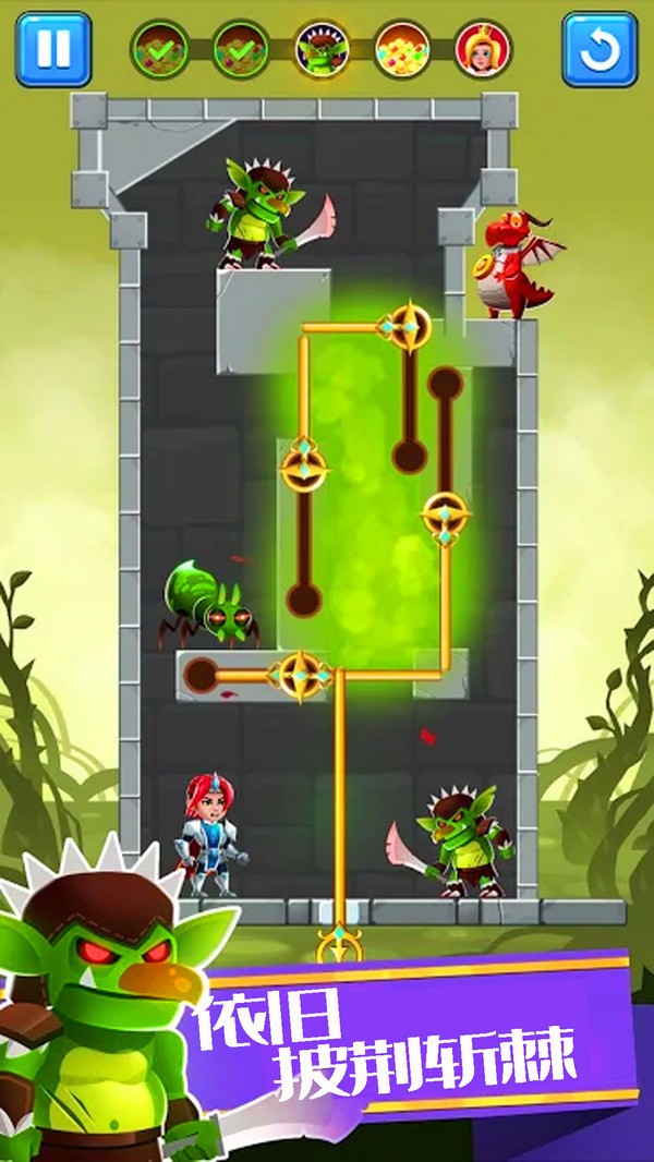 欢乐英雄大作战救援公主闯关是一款趣味性和可玩性十足的休闲益智类型闯关游戏,玩家可以在游戏里扮演骑士,进行各式各样的冒险闯关,最终成功解救公主,享受快乐又幸福的生活。欢乐英雄大作战救援公主闯关游戏拥有非