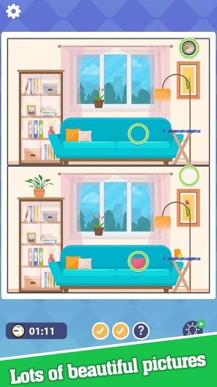 1、游戏很简单,基本没有操作,靠眼力的游戏,发现不同。