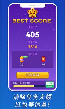我要消砖块游戏采用经典的消除类玩法,挪动方块消除行或者列即可获得相应奖励,连续消除翻倍奖励,完成任务也可获得相应奖励获得更高的积分。游戏规则简单,单手就能操作,随着游戏的发展关卡难度也会越来越大。在游戏中你将能体验到一边玩游戏一边赚钱的快乐。游戏中更设有多样化的关卡来供玩家自由闯关挑战,每一次过关都能获得红包奖励,玩起来非常不错。