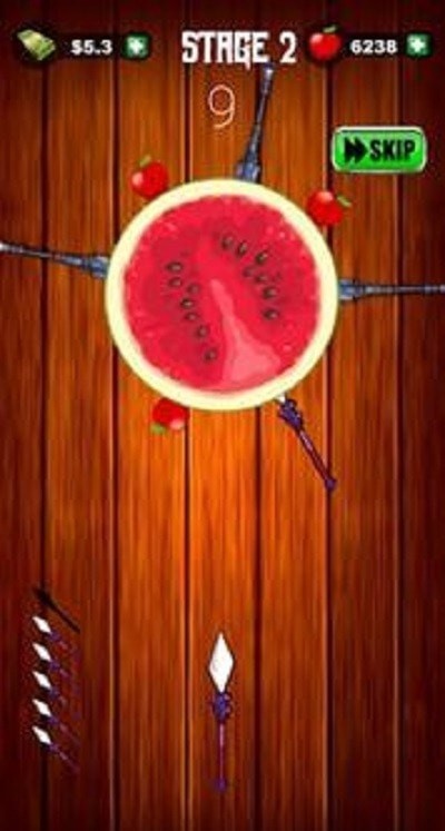 水果矛游戏是一款非常休闲的游戏。游戏中有很多关卡,操作方法也很简单。玩家需要用飞镖射击水果,所有的水果都可以被打碎加分。他们越快,他们就越快。玩家需要集中注意力击中他们才能通关