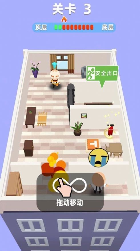 消防小战士3D游戏是一款3D的趣味闯关游戏,在游戏中玩家需要控制消防战士在房间中移动,找到被困群众带领他们从安全出口顺利的逃脱,在途中玩家要避开已经着火的地方,并且可以用各种灭火道具来帮助自己顺利找到受困群众。