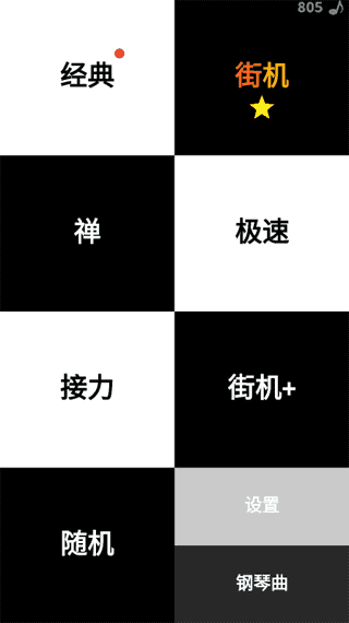 1、经典模式黑块是固定的。在这种模式下获得高分的唯一方法就是提高速度,尽可能快。在稳定节奏的同时,以最快的速度点击所有黑色方块,并在更短的时间内踩下黑色方块。还有一点需要注意的是,这款游戏没有上下之分,只有左右之分。