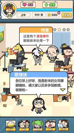 1、各种角色可供选择,各种特点,各种技能,甚至专属角色事件都能给你带来丰富多彩的职场体验。