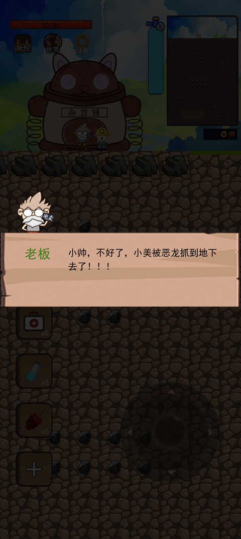 1、一进游戏,就会有一个经典的故事,大概是老婆小梅被抓了,我们要去地下救她,其实只是一个采矿界面