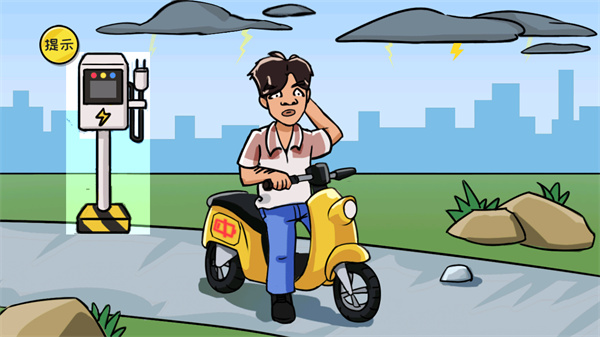 第一关,连续用手摩擦电瓶车的红色闪电位置,摩擦起电,直到变成绿色为止。