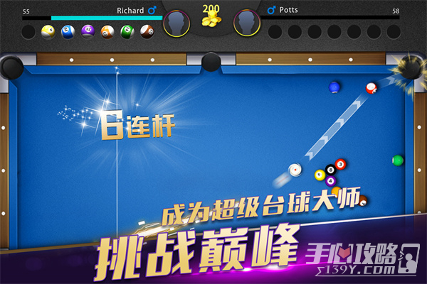 超级台球大师不仅可以与在线玩家竞争,还可以提供丰富、有趣的海量关卡游戏内容,等待您突破关卡