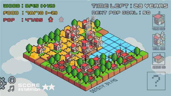 2、当玩家第一次开始时,他们可以首先规划城镇,找到自己的发展方向,平衡自己的生产需求和人口需求。