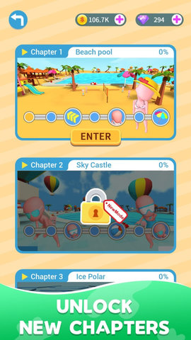 水上公园派对游戏非常轻松愉快,游戏的整个画面相对卡通,创造了一种非常酷的感觉。游戏玩法简单,操作有趣,可以在游戏中不断收集金币,可以用来购买皮划艇。不要错过你最喜欢的朋友!