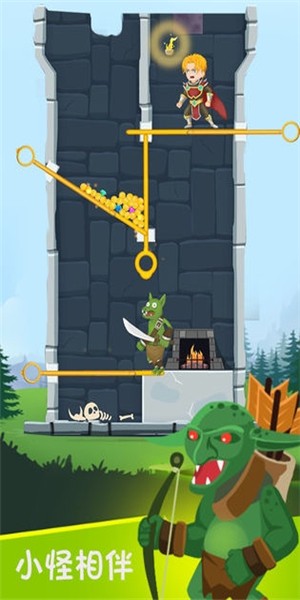 英雄密室脱险是一款指尖操作的地牢冒险挑战游戏,英雄密室脱险游戏玩法有趣。进入游戏后,玩家将操控一个小英雄进行探险,想办法去触发机关带领英雄逃离出去。手动的去旋动一些阻隔杆来改变自己或者敌人的位置,仔细考虑地形的变化,拯救小英雄,收集宝藏。动动小脑瓜,解决敌人,逃出生天,并带走宝藏。