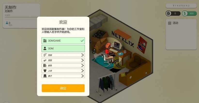 在连续剧工厂游戏开始时,你需要简单地设置你的工作室和角色,并给他们起一个名字。