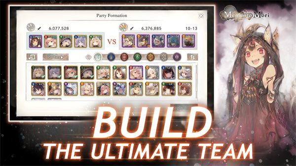 Memento Mori是一款战斗卡角色扮演游戏,游戏采用水墨日本漫画风格,画风识别度很高,属于一眼就能认出的类型,而且音乐制作非常出色,Atarayo、鹿乃,黑云,96猫,konoco、霜月遥、Daoko、新妻圣子,平原雅香,MARiA、制作音乐的山本彩、礼服(梅雨)等。还有水濑祈、尤木碧、花泽香菜、田中理惠、南条爱乃、上坂堇、小仓唯等众多大牌配音演员,为玩家带来视听盛宴。
