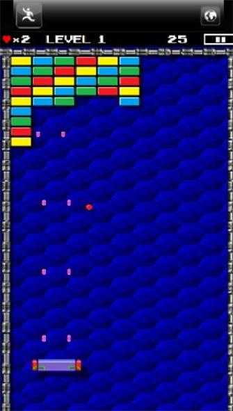 *操作简单:游戏的操作非常简单,只需用指尖触摸屏幕上的滑块,就可以控制球的方向,打碎砖块,让玩家轻松上手。