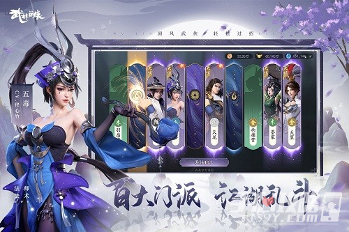 1、游戏中有不同技术的侠客和英雄皮肤人物,玩家可以在武林闲侠(1.5周年庆典)中参加不同的门派,体验江湖冒险