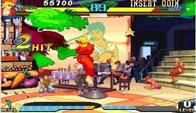 博击街机游戏可以用漫威英雄的角色和超级街霸的角色作战。