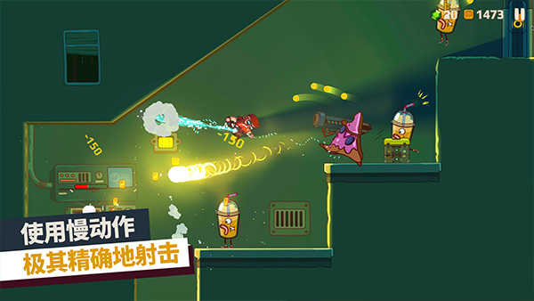 Cups群,如果你不小心,你会被逃跑的Cups“饮料”击中,感觉真的很痛, 面对如此快速的运动,但近距离攻击并不方便”曲奇"最好的办法就是找个掩体,打嗝枪锁定目标——攻击!学会使用死角,在曲奇必死中找到掩体,是非常重要的。