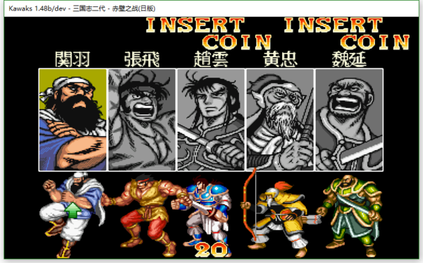 第三关:关底许褚。从此关开始,烦人的小忍出现。路上有一匹马,骑马作战挣分会更快。马出现后再往前会滚来三个木桶,最下方的一个里有食品。许褚其实很好对付,封住就可以了,如果想挣分,可多用大招打他。但他中了一次大招就会飞上半空,然后凌空下击,要想躲开只要躲开他在地上的影子就行了。画面上方有个火种,可选择是否点燃。此关比较短,过关后分数约为65万。