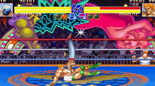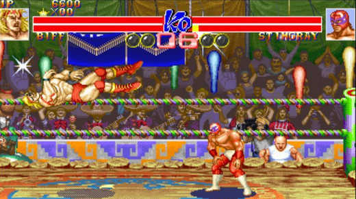 1.1994年,CAPCOM推出了续集《超级摔跤霸王2系列爆裂》,基本恢复到标准战斗游戏系统,不再像第一款游戏那样战斗。
